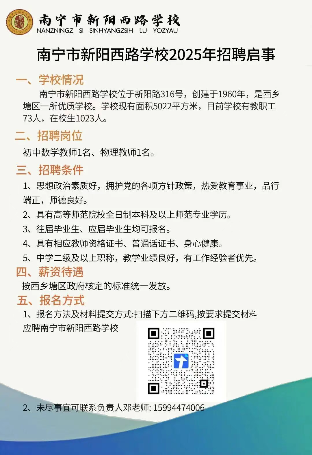 2025年南寧市新陽(yáng)西路學(xué)校2025年招聘2人