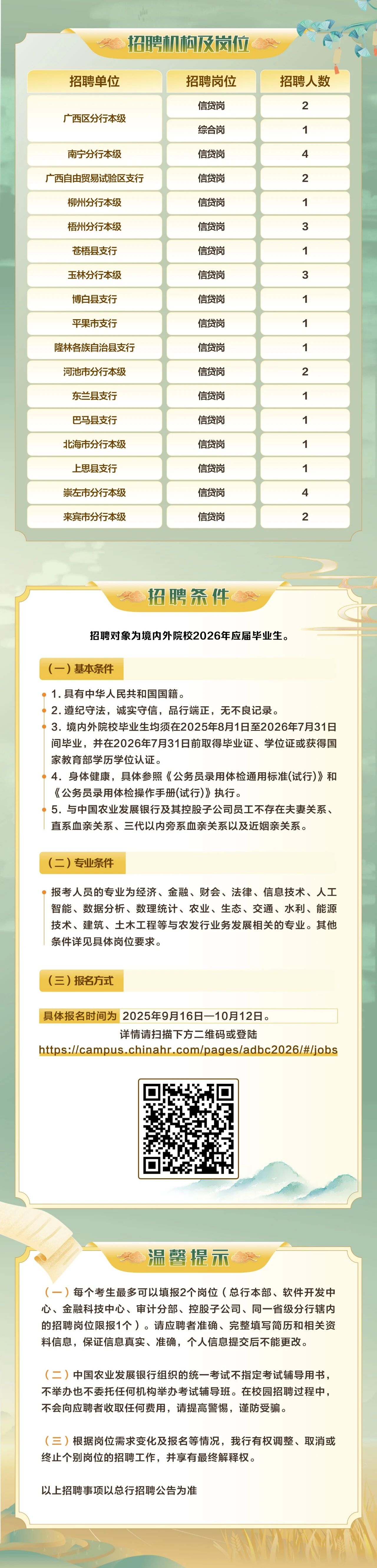 原文標題:中國農(nóng)業(yè)發(fā)展銀行廣西區(qū)分行2026年校園招聘正式啟動