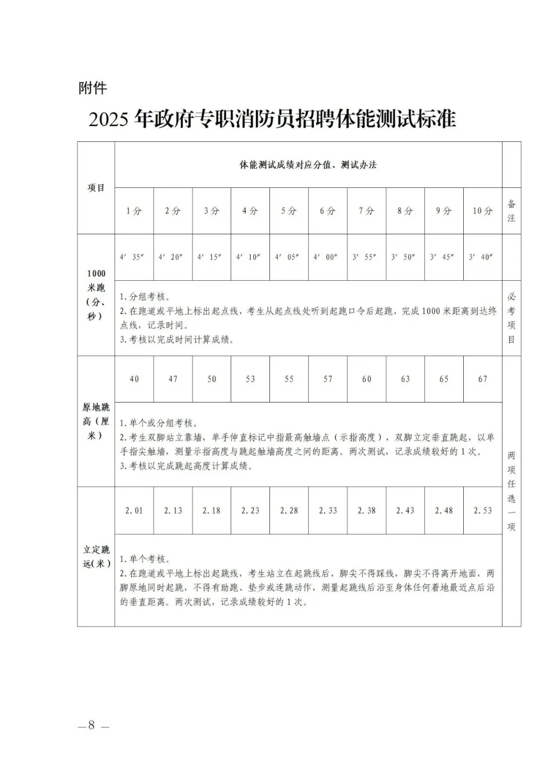 附件2:體能標準測試標準