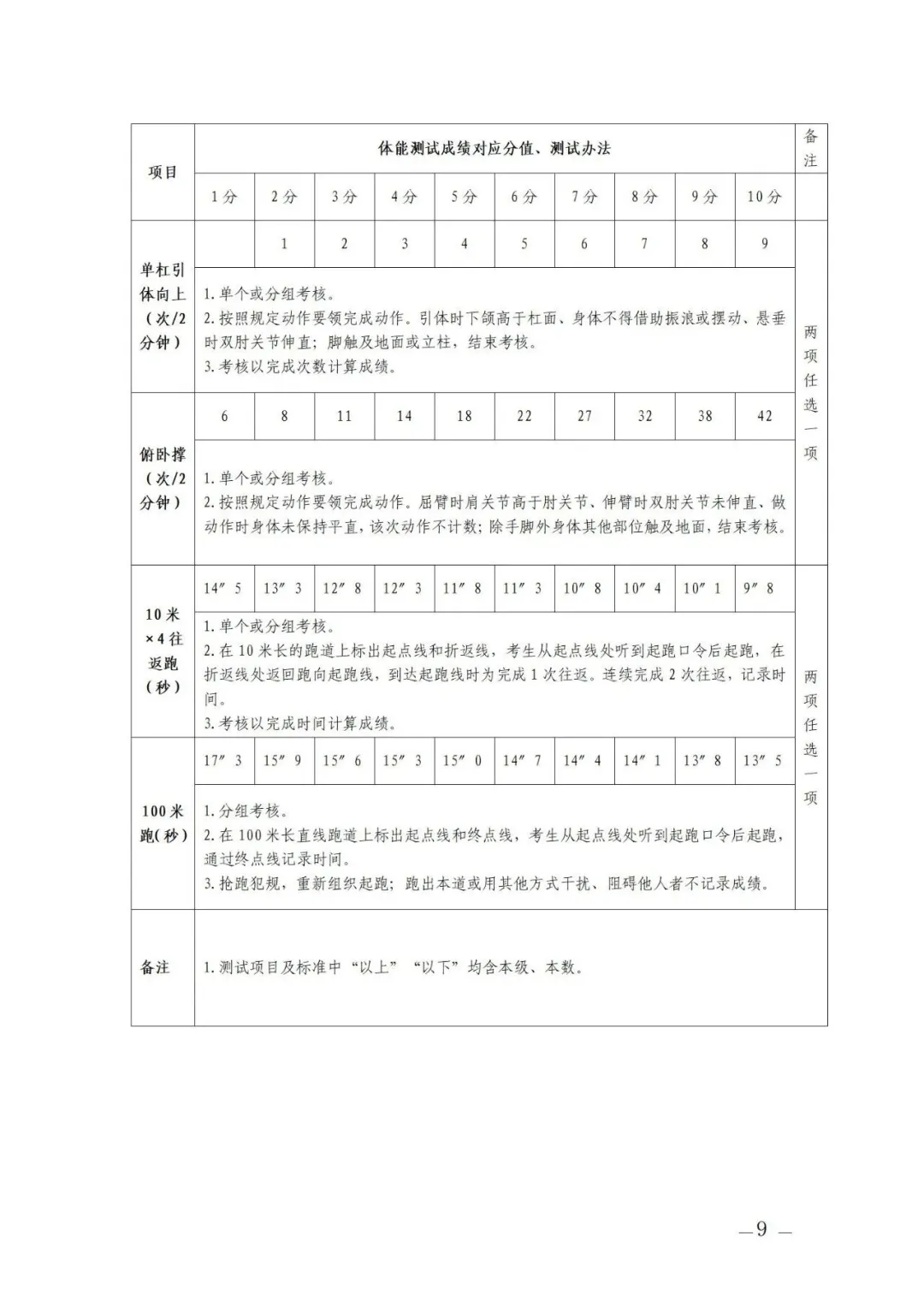 (2)選考項目:①立定跳遠、原地跳高二選一