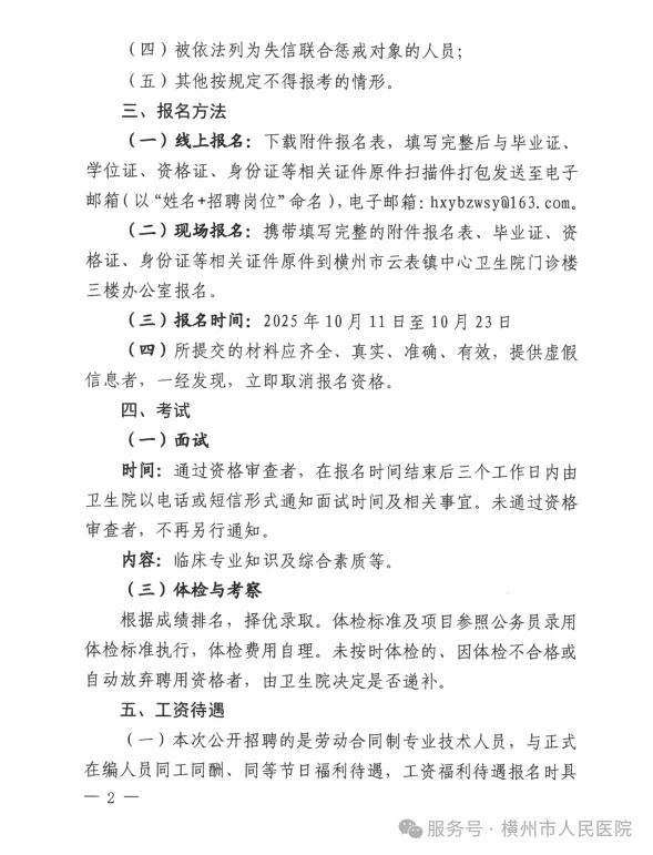 2025年橫州市云表鎮(zhèn)中心衛(wèi)生院公開招聘編外衛(wèi)生專業(yè)技術(shù)人員的公告