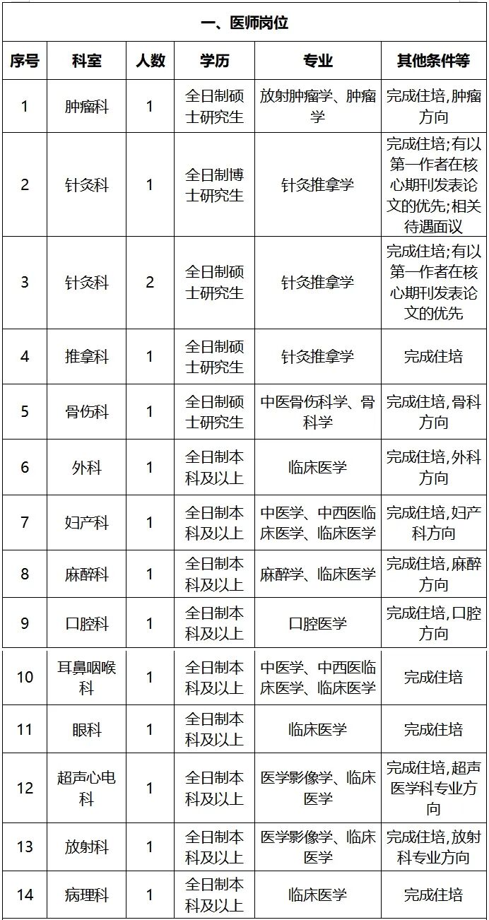 注:2026年應屆畢業(yè)生學歷學位證必須在2026年7月前取得;要求完成住培的,住院醫(yī)師規(guī)范化培訓合格證必須在入職前取得(2026年完成住培的入職前必須通過國家組織的住院醫(yī)師規(guī)范化考試)。